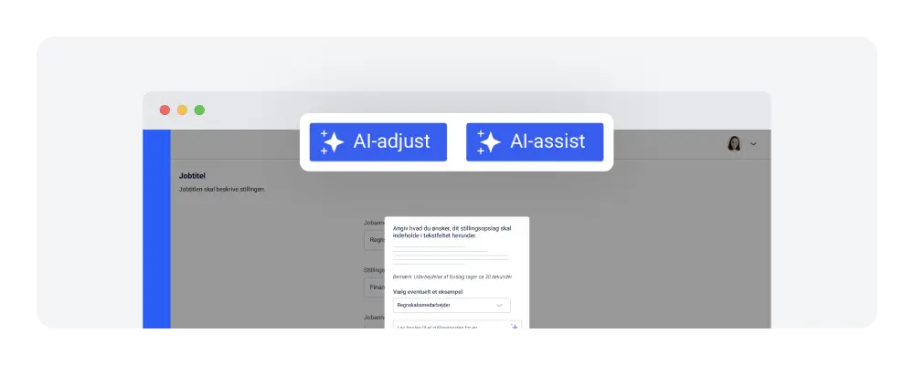 AI’en hjælper med at sikre, at jobopslagene er klare, ensartede og nemme at forstå, så I rammer de rette kandidater.