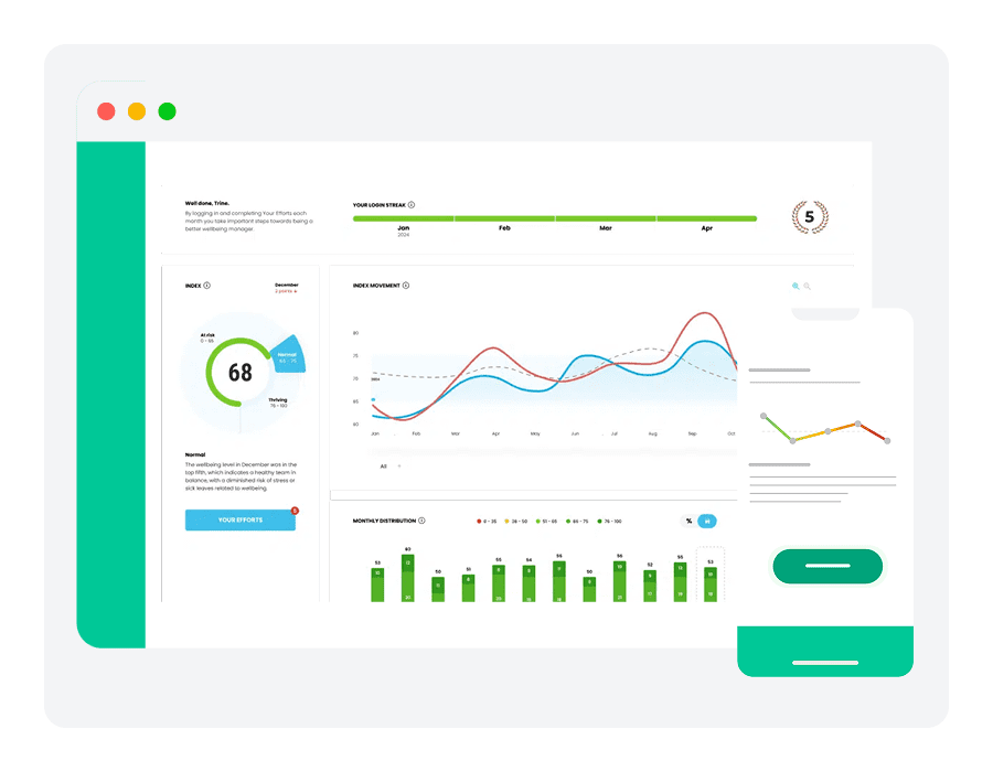 Mange virksomheder fokuserer på det mentale helbred – men glemmer kroppen. Wellbeing Body bygger bro, så medarbejdere får adgang til fysioterapeutisk rådgivning og øvelser, når de første tegn på fysiske udfordringer viser sig. Det er ikke et motionsprogram, men et professionelt beredskab med evidensbaseret vejledning, der hjælper medarbejdere til at passe på kroppen. Samtidig får HR et samlet overblik over de mest udbredte udfordringer i organisationen.